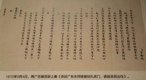【兩廣總督百齡乃跪求嘉慶皇帝任命童鎮陞為一品廣東水師提督,提督衙門在虎門寨】