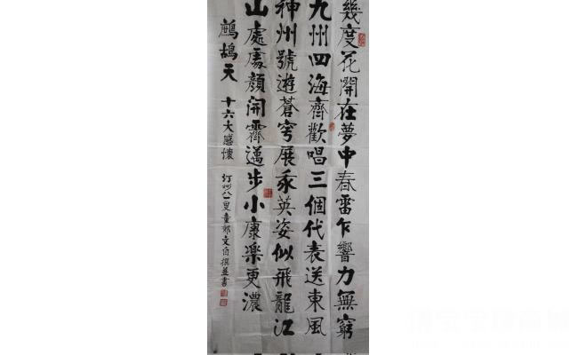 童郁文(1923年2月-)字焕远,笔名青岩老人。福建长汀县童坊人。中国文联书画艺术中心书法家、中学高级教师。1942年省立长汀中学初中第一届毕业生。大学本科(函授)毕业。先后在厦门大学、长汀一中工作,从事教育事业40余年。从小酷爱书法,青年时代拜书法家林钟鸣先生为师。四十年代期间,得到书法家弘一法师、虞愚、罗丹等前辈的亲自指点。现为中国书画家协会研究员、中国老年书画研究会创作研究员、福建省书法家协会会员,闽西书法家协会会员,长汀书法协会名誉理事长,中国王羲之书法研究会理事,福建逸仙艺苑书法篆刻委员会会员,中和书法函授院高级书法师。自六十年代以来在国内、外书法大赛中获得金奖、银奖、铜奖、或一等奖、二等奖、三等奖和优秀奖等二百余次。如:1995年12月中国书协、中国美协、《人民日报》等承办的“中国首届‘书圣杯’国际书画大赛”,其作品获国际铜奖,1998年12月“第二届世界华人艺术大赛”,其书法作品《鹤舞》,获国际荣誉金奖,1995年4月“庆祝中国工会成立70周年全国书画摄影艺术大展”,其作品获一等奖,1998年8月,中国文联、中华艺术学会、菲律宾书画协会等20个单位联合授予“国际书画名家”荣誉称号。享有“跨世纪中国优秀老人书画家”、“世界杰出华人艺术家”。其作品入编《情系国魂当代书法家精品集》、《古今墨缘书法撷英》等数部专著。对其艺术成就《福建日报》(1998.10.28)以《博采众长,练就“童体”》为题,报道其事迹,登载其“雲鹤”书法作品及“童郁文挥毫泼墨”照片。还有福州《老年报》、《厦门日报》、《闽西日报》等也登载过他的作品或事迹报道。一些作品流存于香港、台湾以及美国、日本、法国、泰国、马来西亚、新加坡、菲律宾等地的收藏家。1999年出版个人书法集《木兰诗》,得到海内外人士的高度评价。业绩入编《中国当代书法家大辞典》、《中国当代文艺界名人大辞典》等辞书。