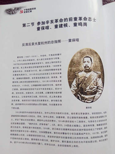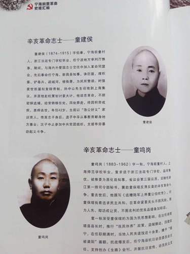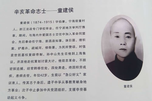 宁海辛亥童氏三志士,其中童建候是现香港童氏宗亲会童三军宗长的祖父,曾任民国宁海第一任县长。