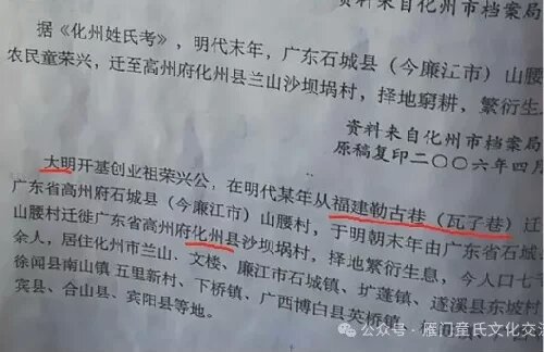 基于化州的资料,结合永定、大埔、普宁的老谱,整理资料如下: