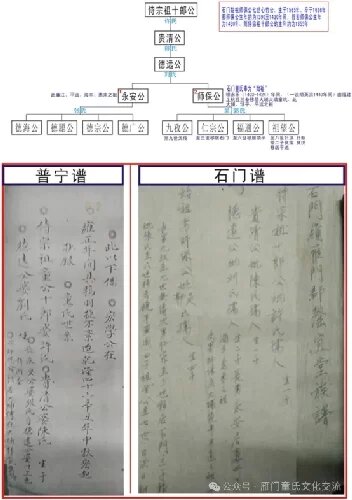 参考资料二:笔者在整理族谱时,查到广东梅州大埔石门岭和广东普宁市的老谱记载如下: