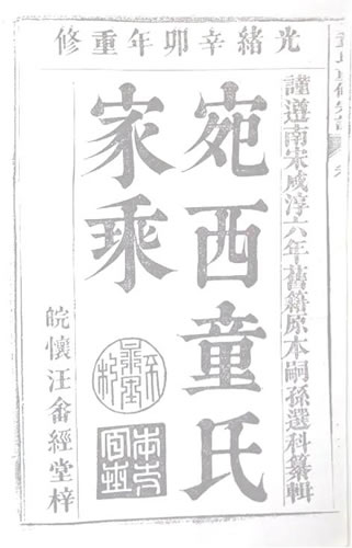 今天看到宛西童氏家乘(光绪辛卯年重修)的部分内容,现作一解读。