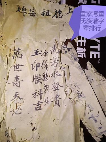 四、重庆 大足铁关镇童长彬宗长提供的谱内容 ,与眉山童家湾残谱相互佐证,获悉六郎,庚一,庚五,有贤,有文,有福,有才,珙舒等人名和字辈排行。其中派语中有错別字。