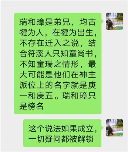 五、瑞和璋在谱上究竟是谁?由童惠平提供的台湾私人收藏的瑞公报名考试时填报的政审资料“童瑞,世奇,一,犍为”给出了答案。瑞即庚一,璋即庚午(五),共七兄弟。
