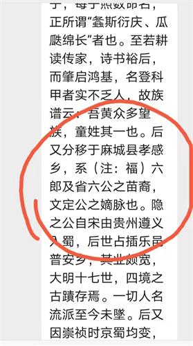 六、以上重庆大足谱记载的明朝一世祖童艾天寿号六郎,从时间和当时的居住地等信息进行考证,即湖北千三公系福(伏)六郎,迁川祖是竹林分支昱公。由湖北童建新宗亲提供的蕲春谱加以佐证: