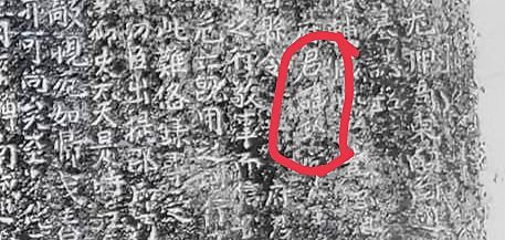 微信上与作者小童探讨,他发来局部较清晰的墓志铭照片,放大看,隐约可见“王"旁,印证了笔者之推测。从照片上看,该字左半偏旁为“王”字,右上部为“人",独缺少了右下部分。