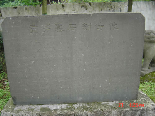 童器墓,在今石塘乡蕉雅村石塘岭①。距平阳城西6.7公里,乘昆阳至凤山头公共车,焦雅村村头下。墓座落于村西北山麓,四周砌墙,围内竹树蓬展。一条长长的甬道,从园门直达墓穴,甬道两侧依次陈以石俑、石兽、石鼓、碑、牌等,并间以花草,虽因久历时代风潮,俑设已残缺不齐,但身临其境,犹不减雍容威严,使人顿生肃然起敬之感。墓葬为“榻椅坟”,坐西北朝东南,前立一方高大石碑,由于风催雨泐,铭文已泯灭不识,。记得《明史记事本末》载有童器任工部营缮司主事时,明廷曾分别于弘治十八年(1505),正德六年(1511)敕赠其父母官阶、名号,大概是碑应记其事。