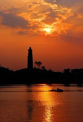 就在永淳县百姓感叹走了贪官又来了个“风流浪子”时,有人发现,这位县太爷对县城郁江边高村附近那座小山冈产生了特别的兴趣,终日若有所思地在江岸边、山冈上徘徊,全不顾住在山冈附近的高村人素以“民风剽悍”著称,随时可能对“官家人”进行袭击。一天,童时明终于召集手下及县里一批士绅发话了。在他看来,永淳县衙府所在地地势低,而郁江边经常“滋事”的高村所伴的那座山冈酷似一只乌龟,是块“金龟地”。离金龟地几百米的另外几座小山丘,蜿蜒曲折,恰似一条大南蛇,是块“南蛇地”。龟和蛇居高临下,面朝永淳县衙张开大口,虎视眈眈——此乃大凶之相。童时明认为,要让永淳安定下来,须在“南蛇地”位置上建一座亭子,锁住南蛇。在“金龟地”位置上建一座宝塔,镇住乌龟。这样一来,塔在永淳县城西面,当日出东方时,塔影西斜,寓示永淳开门大吉,紫气东来;当日落西山时,塔影东斜,寓示永淳关门锁蛇头,平安无事。