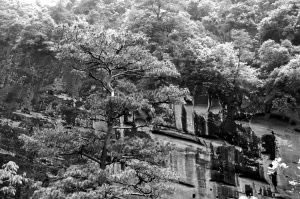 由于天成岩地处两地结合部,人烟稀少,植被保护良好。进入峡谷,但见绿树青藤重重叠叠,遮天盖地,就像走进一座绿色海洋。这里不仅有香樟、黄楠、花梠、银杏这些别处罕见的木材,而且还有长叶榧、红豆杉、沉木樟等七八种濒临灭绝的珍惜树种,因此被定为省级自然保护区。