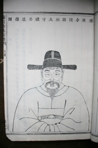记载大山童氏属雁门郡,堂号敦本堂。始祖景谈公,第三十四世祖源二公自元明之季从合浦迁居临安大山距今已有六百余年历史。据不完全统计现大山童氏后裔分布临安的杨岭杨桥村、里畈村,临目白沙村,临安锦城镇小马等地。大山村大半人口都是童姓。这是童氏宗谱上的祖宗画像