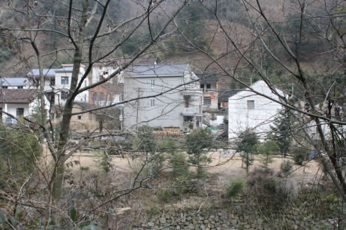 远处黄草地的地方是原童氏宗祠所在地,灰色三层楼是童氏本家的房产,两套家谱就珍藏在他家(图片21),