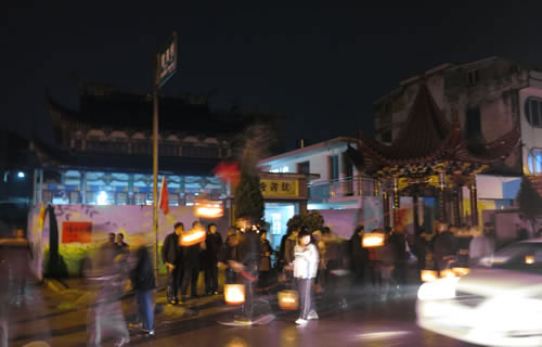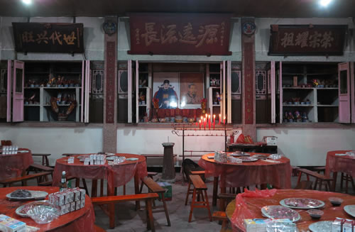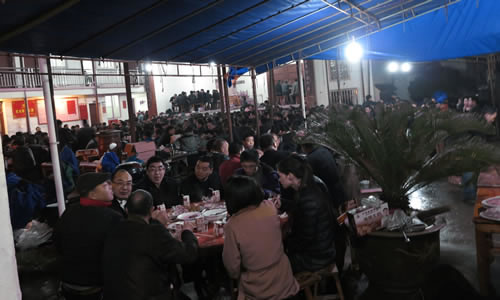 参加迎龙灯后村民们纷纷涌入童氏祠堂喝祠堂酒