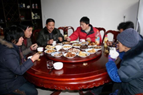 女儿或干女儿.干儿子在正月初一回娘家或干爸.干妈家拜年。新结婚的女儿回娘家叫“做新客人”必须娘家的弟弟去女儿家里邀请叫“叫新客人”女儿女婿才能回娘家。新客人来必须泡糖茶而不是茶叶茶。