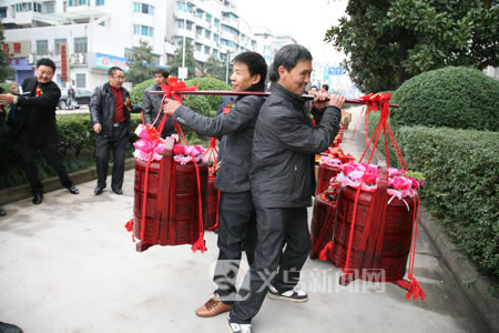 按照义乌的风俗,最高的订婚规格是“十八担”。