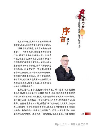 本书序言由浙江卫视著名新闻评论员、高级记者、原新闻部主任舒中胜所作。他那句深入人心的浙江官话“时间不早了,洗洗睡吧”,已成为许多观众熟悉的声音。他在序中写道:“我认识宁海,是从认识前童开始的;认识前童,又是从前童元宵行会开始的。”这句话,也道出了许多人的文化认知路径。