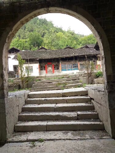 整个院子坚固紧揍,布局合理巧妙,所有的石头和木材都是就地取材。特别是所用的石头,不是用火药炸取的,而全用人工凿石而取。所取石头之多和所取石头之大均难以想象,不知要花费多少的人力物力,才能完成。私塾建在大院外前两百米左右的东边的小山梁上。占地三亩,一栋房屋,一个练操坪,半圆形围墙,东西是小朝门,面前是三米高并凸出去的地坝坎子。两边小朝门一关,野兽都很难进去。