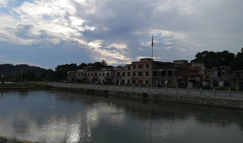 该村坐落在 S348 省道旁、道路畅通、交通发达。离英德市 60 公里,距九龙镇 5.8公里,附近景点为 6 公里处的九龙小镇(小桂林)。四周高山环抱,白云相间,四季气温适宜,空气清新,果蔬新鲜。宜居宜吃宜游,建议一日游,夜有活动。