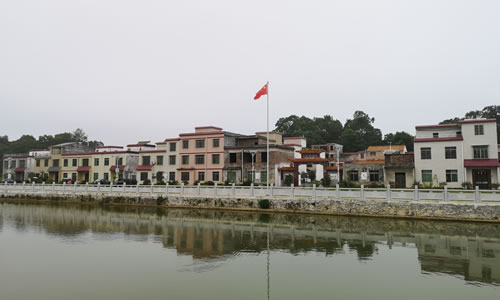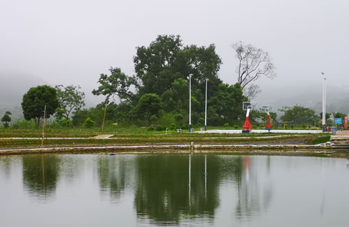 自然环境优越,村后树林森森,绿色一片,村前水面淼淼,秀色一潭。前低后高,视野开阔。村内房屋布置整齐划一,间距开阔,有村办公室、党员学习室、大牌坊,球场等活动设施齐全。村边祠堂、龙真古庙、三帝古庙、停车场、公厕、公园、鱼塘门类齐全。古树众多、桃树林成片。蔬菜果子随手可摘。