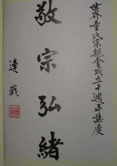 连战、吴伯雄为台湾童氏宗亲会题词