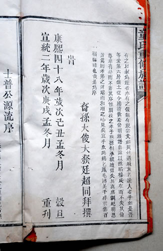 康熙48年已丑年修字派:大延承新择、多赐沐鸿恩、作善天常眷、诗书继圣贤