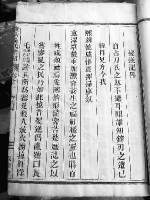 至于为什么只有一部中有《发逆纪略》这篇文章?只有这样去推测,当时刻印《童氏宗谱》时确是刻印了五部,五部的内容也一样,里面都有《发逆纪略》这篇文章,而这篇文章除了记述长毛(太平军)对兰溪民众犯下的罪行外,对清军趁火打劫的暴行也叙述得相当详细。民国十年离清代灭亡时间不久,在民众中清代皇权威严的影子还没有完全散去,所以这篇纪实性的文章在装订时被怕引起祸端的族谱修纂首事仔细考虑后还是抽了去。而出现的另一册记载有《发逆纪略》文章的“义”字号的《童氏宗谱》卷一是宗谱修纂队伍中具有正义感、生性又胆大的人瞒着族中头首和其他修纂人,买通刻印宗谱的师傅重新印刷一卷或一部,从而保留了下来。正是这位具有正义感的《童氏宗谱》修纂参与人的行为,使我们后人能够全面客观地了解当年一段不该忘记的历史。