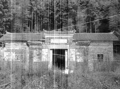 【祖祠、家庙】祖祠在中赤村童屋,门前竖一对石桅杆,为十一世祖功臣公创立,已废,未重建。