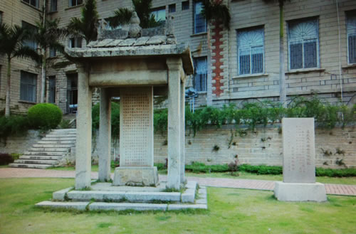 这是在厦门大学里的一块碑,是嘉庆八年闽浙总督玉德立起来的。在前一年的时候,海盗蔡牵带着十几条船、四五百号人,在一个月黑风高之夜,突然摸进了厦门岛对面的大担山岛(现为大担岛)。