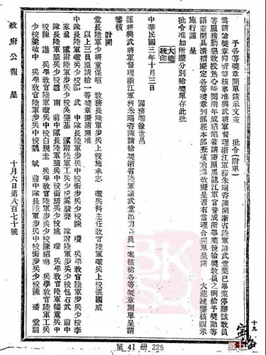 嘉奖令(1914年政府公报)