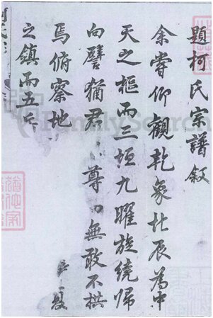 异姓修谱,谱序相同一般为谱师所为,但此柯姓谱其迁始祖为:仲常:生於1057年,通判潭州,苏轼谪居黄州写有“异鹊”诗相赠送,此柯仲常与泉州柯仲常(生於1017年也有苏轼赠《纪柯述瑞鹊》)诗的内容一样,只是将“潭”改“漳”而已,且时间上不一致。此点到是与上饶谱序上的“仲常通判潭州苏轼赠异鹊诗”相一致,只不过一位姓“童”,一位姓“柯”,谁是谁非,或许此柯与童有关联,有待进一步研究。