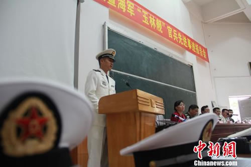 海军“玉林”舰官兵代表童振荣为玉林市高中师生做事迹报告。李建红摄