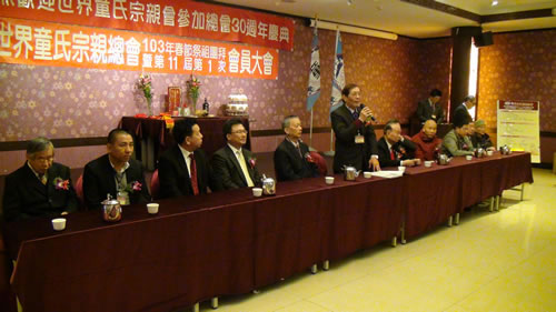 会议致辞。会议主席、理事长童清松首先致辞。然后是首长与贵宾致辞。大陆嘉宾福建泉州宗亲会顾问童联军、浙江宗亲会秘书长童晓、湖南宗亲会筹委会会长童雄伟、安徽宗亲会会长童青分别祝贺发言。浙江、湖南、安徽、陕西宗亲分别赠送了祝贺书法。童氏议员童仲彦、老理事长童永、东道主台北童汉镛理事长等分别发言。