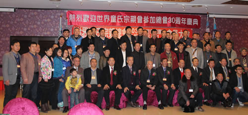 2014年2月15日,台湾世界童氏宗亲总会在台北市北投区华港城婚宴会馆隆重举行祭祖、团拜、第十一届第一次会员大会暨成立30周年庆祝大会。台湾世界童氏宗亲总会、基隆市、台北市、新店地区、桃园县、台中县童氏宗亲会和其它县市以及海外的宗亲代表与嘉宾共350多人参加会议。其中,大陆浙江宗亲会、安徽宗亲会、福建泉州宗亲会、湖南宗亲会筹委会四省代表70多人作为会议嘉宾,首次参加了台湾宗亲会议。