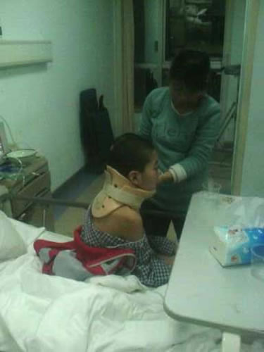 2014-1-3 西安西京医院 广东来的教授和西京医院黄教授等一起为童海涛做了颈椎部手术,手术从上午8:30到下午14:00