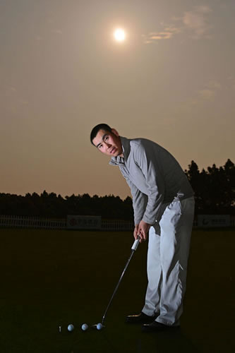 练习日晚上,业巡赛的官方摄影师王凌老师,拍到了他一张在月夜下练习推杆的照片。“我推杆不好,老婆建议我每天晚上练300个。家里她在推杆练习器旁边竖了个小黑板,记录我每晚推杆的次数。”童张文妻子程芳曾在山西一所学校任教,不过为了他的高尔夫梦放弃了待遇不错的单位,跟着他到了杭州九桥球会,“让老婆受苦了,我现在收入不定、前景未明,什么也给不了她。”童张文有些惭愧的说。