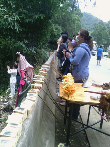 2014年5月25日,台湾在福建车祸宗亲家属童某珍与其他台湾亲友一道到前日车祸发生地祭奠遇难的亲人。