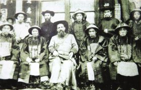 童兆蓉(前右二)与法国神父赵保禄(前右三)。资料图片