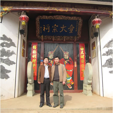 在童晓陪同下,童剑超走访了义乌稠西童氏的中心——城西蒋母塘童大宗祠,与义乌稠西童氏宗亲会常务副会长童仕明等宗亲亲切交谈。童剑超充分肯定了童氏宗亲网成立以来作为宗亲交流平台所起的积极作用,童仕明鼓励童剑超等宗亲多多写稿、多为宗亲做贡献,大家共同努力,先将浙江省童氏的源流搞清楚,下一步,待条件成熟,可以召集各地童氏宗亲开个研讨会。