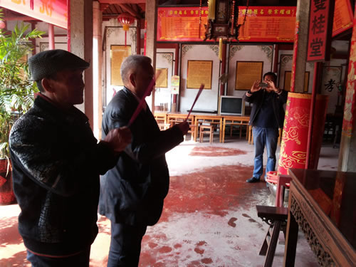 在义乌宗亲全程陪同下,童乃初、童卫东二位宗亲参观了位于蒋母塘村的义乌童大宗祠,祭拜了童氏列祖列宗。