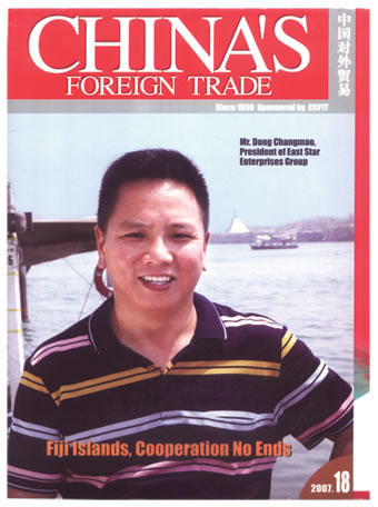 由中国国际贸易促进委员会宣传出版中心主办,面向170多个国家和地区的商业人士发送的全球大型经济期刊《中国对外贸易》,2007最新版第18期封面人物锁定东方之星集团董事长童昌茂,并详细介绍其创业历程。《中国对外贸易》期刊创刊于1956年,是中国国家领导人出访所携唯一刊物和外交部指定各驻外使馆对外宣传交流的刊物。该刊物主要面向中外经贸企业和外商投资企业高层人士阅读,收录的都是行业领军人物。