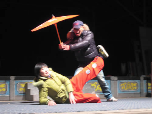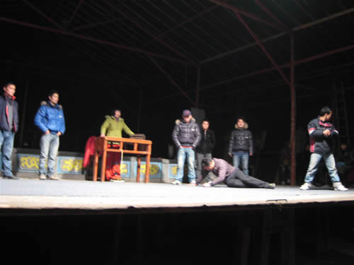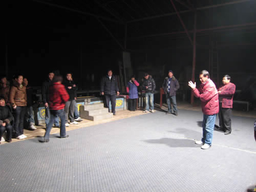 2009年1月11日,笔者与童氏宗亲会几位会长理事一同前往义乌下骆宅下楼店村探班,看望了正在彩排的《碧血丹心》导演、编剧及全体演员,并拍下了几个彩排的镜头。