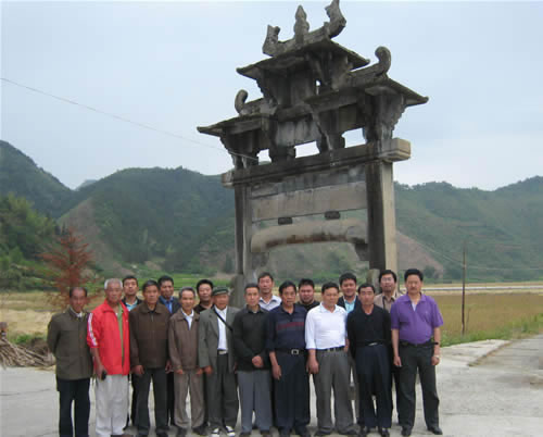 5月14日上午8时,我们从桐庐分水出发,经淳安县的文昌镇到 淳安县的临歧镇,已是10时左右。在临歧镇,我们与早已联络好的仰韩童氏族长童启明、以及童贵培、童子坤等宗亲会师,然后一同前往仰韩村。