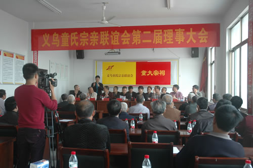 会议由童昌茂主持,首届会长童四鹤作总结报告,题目是《前无古人的宗亲事业》,首届副会长童昌云作《财务收支情况汇报》,首届秘书长童晓宣读修订后的《章程》,首届副会长童元剑宣读《义乌第二届理事会成员名单》,会议一致通过了修订后的章程与第二届理事会成员名单。新当选的第二届理事会会长童四鹤随后发表获选感言,谈了今后的工作设想。新聘任的顾问代表童永富做了祝贺发言,提出了殷切的期望。