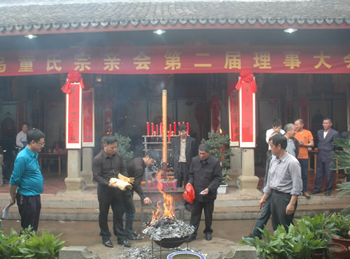 大会圆满结束后,全体与会人员在义乌蒋母塘童大宗祠合影留念,在祠堂同吃太公饭。下午,与会代表集体参加了童大宗祠清明祭祖,以传统的庄重仪式祭祀了稠西童氏列祖列宗。