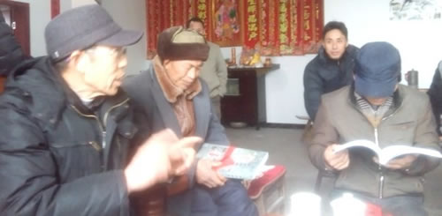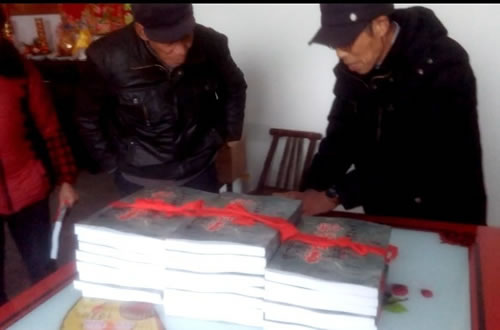浙江江山叶村童氏家谱于2015年3月4日发放。收谱人员在一起小聚,下午探讨了祠堂修缮、资金、时间、人员等问题。待时机成熟时,大家再行商量。因祠堂于上世纪八十年代被村里卖给私人了。
