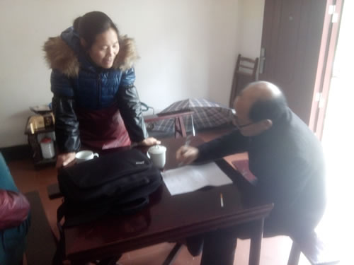 经商量后继续查寻,边驾车边问地名,一路问,一路开,在约十五华里的村庄停车,问村民,该村是否就是联盟村,说是,问有没有姓童的,说有,其人不姓童,刚那边有人过来,就告诉那边来者就是老村长他姓童,由童舜华过去与村长打招呼,说明来意,村长说到其家坐坐。