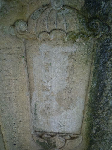 村南约150米有一座古石拱桥,这是通往洪坑村方向的必经之桥。桥宽约六七米,高约三米,宽约三米。一村民说当年清理水道时发现在石拱桥下背面有字。因下雨水位有点高,又有点急,我们为了搞清此桥的历史与时间,让村民拿来连鞋雨裤,先是童小伟下水,把刻字上的杂物清理掉,后童海根下去拍照,在一块石条上书二行字,其中右侧一行为“大明弘治八年”(1495年),根据此时间可知到今天为止已经整整五百二十年历史了。左侧一行字则不是很清楚了。