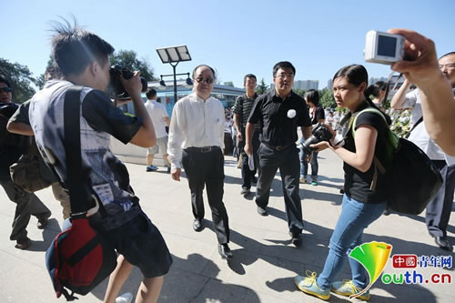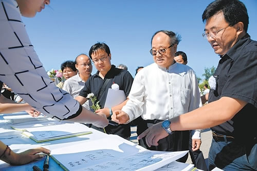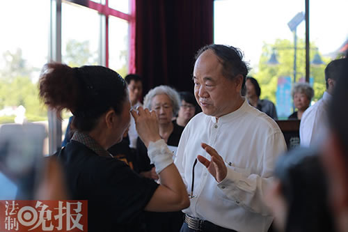莫言现身为老师送行。中国青年网记者张炎良摄