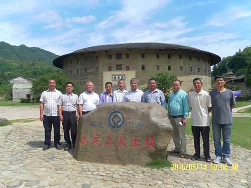 参观永定土楼、在土楼王子振成楼门前与宗亲合影留念