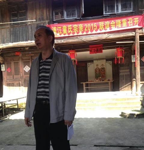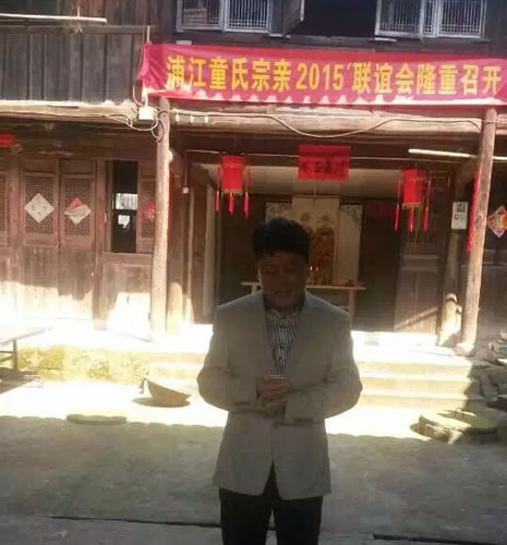 2015年10月17日浦江童氏宗亲在浦江中余村童氏宗祠举办2015年年会。浦江宗亲组织了境内三支童氏宗亲代表和中余盘里坞宗亲共70多人多参加。盘里坞宗祠张灯结彩,欢聚一堂,共话童氏渊源,共某宗族发展。