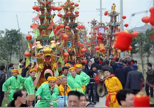 每年元宵活动中有彩船队、鼓亭、台阁与狮舞、龙舞相互交融,由龙旗引导,一路上鼓乐齐鸣,炮声震天,人声鼎沸,长达数里的队伍浩浩荡荡走街古村,万人空巷,老幼踊跃,有条不紊。这种激动人心的热烈场面,其热泪而纯朴的民情民风,其完善而有秩序地组织运行,如果不是亲临此境耳闻目睹,是很难想象如此诱人之魅力。